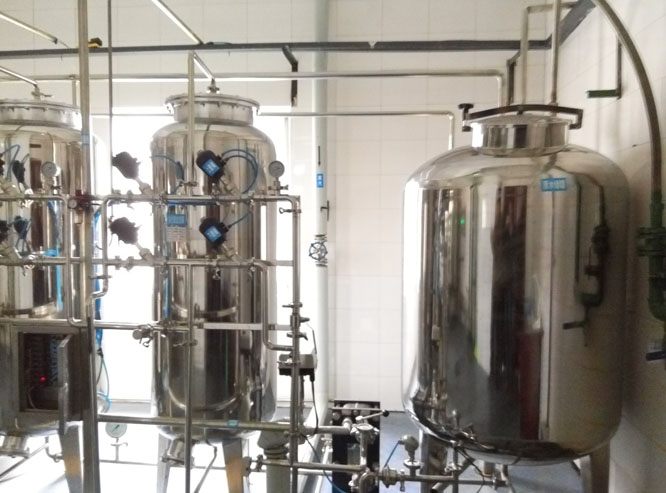 由于反渗透产水略偏酸性,经过二级反渗透后PH值较小,为了满足工艺需求,同时膜元件要求进水为中性佳,这对二级反渗透膜的长期稳定运行及对脱盐率、产水量都大有益处。所以需要在二级反渗透膜前对给水加碱进行PH调节到中性。采用美国米顿罗计量泵自动加药,计量准确、加药可靠。加药量约为3PPM。