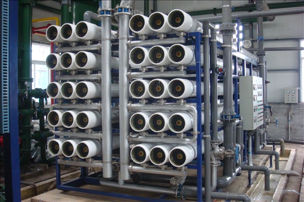 反渗透是外加压力对高浓度溶液提供比渗透压差大的压力,水分子将被迫通过半透膜到低浓度的一边反渗透可以滤除高达98%以上的盐分以及在内的绝大多数污染物,我公司选择的反渗透膜采用美国进口,其高脱盐率,大大保证了水的品质。